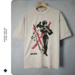 Impose ton style avec ce t-shirt beige stylé et badass à l’effigie de Maki Zenin, l’une des héroïnes les plus marquantes de Jujutsu Kaisen et protagoniste centrale de Jujutsu Kaisen 0. Issue du clan Zenin, Maki a tracé sa propre voie en s’affranchissant des chaînes de son héritage pour devenir une combattante redoutable et respectée.