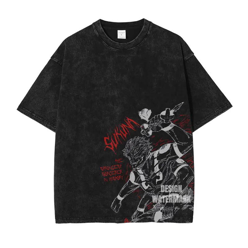 Impose ton style avec ce t-shirt noir délavé stylé et terrifiant à l’effigie de Ryomen Sukuna, le légendaire Roi des Fléaux. Considéré comme le plus puissant des sorciers jujutsu il y a plus de mille ans, Sukuna est redouté comme l’ennemi ultime de l’univers Jujutsu Kaisen. D’abord perçu comme un démon imaginaire de l’ère Heian, il était en réalité un humain, surnommé l’Infecte, contre lequel même les sorciers de l’âge d’or du jujutsu se sont effondrés un à un.